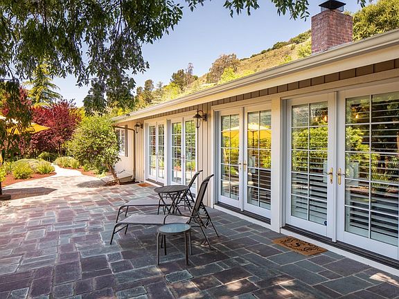 Set in a desirable neighborhood within walking distance to Carmel Valley village is a modernized SINGLE LEVEL estate home consisting of 4 bedrooms & 3 baths on just over an acre. 2 Primary en-suites are at opposite ends of house. Primary en-suite includes radiant heat in the bathroom,Quartz countertops, walk-in shower, soaker tub & vanity. Large primary walk-in closet. Library/office w/built-in cabinetry off entry. Home has 2 living areas, each one has a fireplace.Updated gourmet kitchen overlooking a sizable den. All rooms are bathed in natural light with a wall of French doors and windows, that open onto 2 large flagstone patios, one with a large pizza oven! This home is an entertainers delight! All of this is surrounded by a gorgeous, and fully fenced mature garden including several fruit bearing trees. Captivating views of the Santa Lucia Mtns. Driveway security gate, alarm system give you a sense of security. From the front gate thru the entire house there is not one step up!