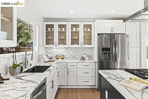 Terraced backyardSerene surroundingsCarrara marble on countersStunning viewsWell landscaped foliageBuilt-in wine refrigeratorUpdated bathrooms