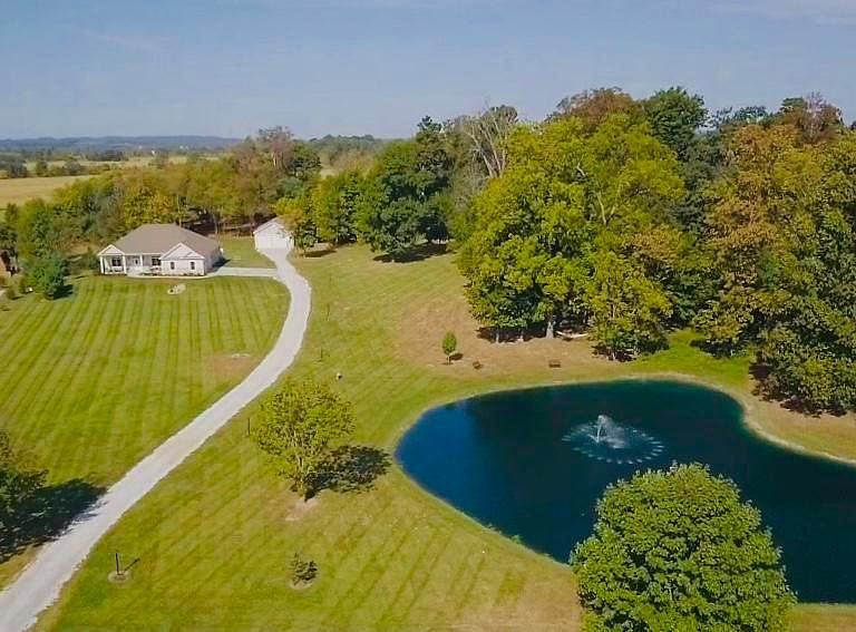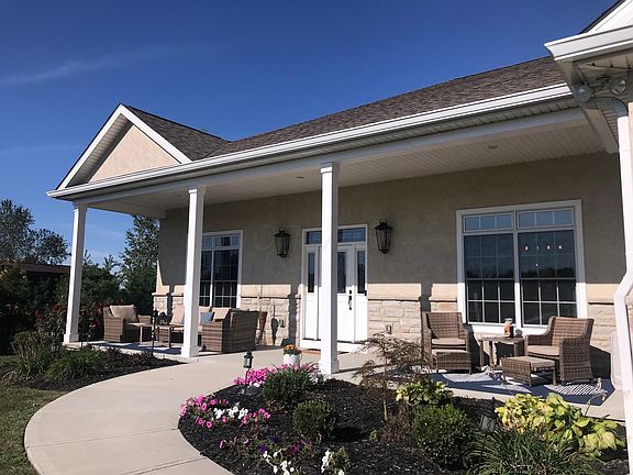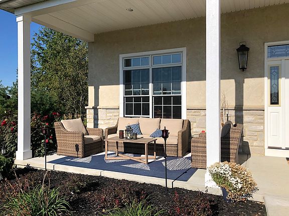 Gorgeous sprawling 5 BR custom ranch on 5 acres in Bloom Carroll Schools! Sparkling stocked pond w/fountain. Open floor plan with 11' ceilings, hardwood floors, ceramic tile, high end wood finishings including coffered ceiling & crown molding. Gorgeous kitchen has rich maple cabinetry, granite, tile backsplash, s/s appliances, gas cooktop, double ovens, touchless faucet & walk-in pantry. Pella windows & oversized doors throughout. Stunning Owners Suite w/deck access & spa like Owners Bath w/dual sinks & dual shower heads. Bright finished walk-out basement w/wall of windows, bedroom, full bath & mini kitchenette area. 34x16 composite deck w/rear pond view. 30'x40' Outbuilding with electric. 3 car garage. There is an additional 5 acres availa