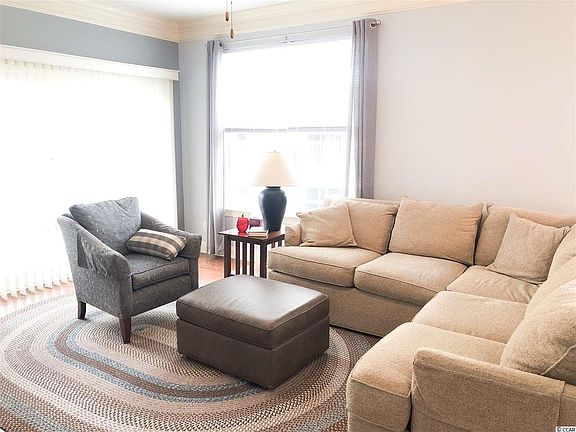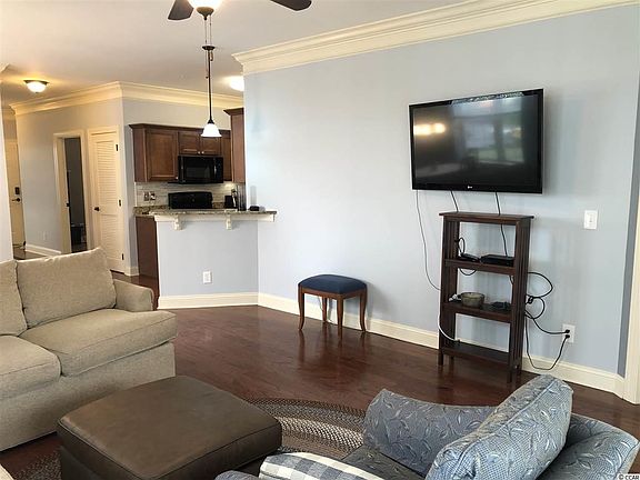 You don't want to miss this turn-key condo in the Surfside area of Myrtle Beach. This condo is located in the fabulous Villages of Queens Harbor, which features a resort style pool & cabana. This corner unit is located on the third floor of an elevator building and has AMAZING upgrades. As you enter you'll notice hardwood floors and crown molding throughout the living space. The kitchen features granite counter tops, a spacious pantry and custom tile backsplash. The open floor plan leaves plenty of room to entertain, with a large living and dining area. The balcony overlooks lush landscaping and a relaxing view of the pool. The master bedroom also features wood floors, his and hers closets and an en-suite bathroom. With three bedrooms and two full baths you'll have plenty of room for your family and guests. The Village of Queens Harbor is located walking distance to restaurants and is a short drive to the beach, shopping, and all of the Myrtle Beach attractions. Don't miss out on this amazing place to live. Call to schedule a private showing today!