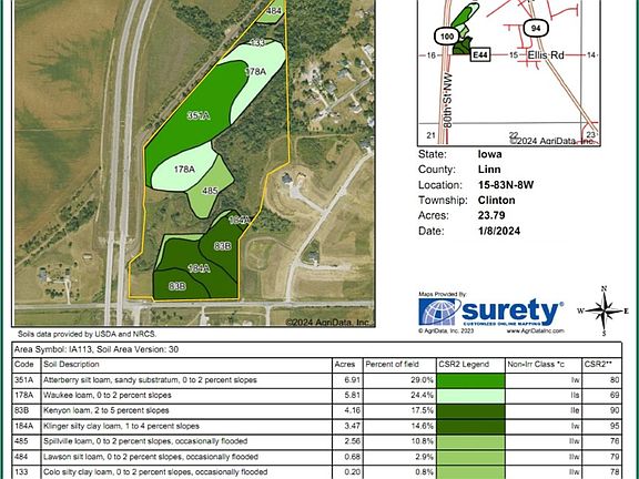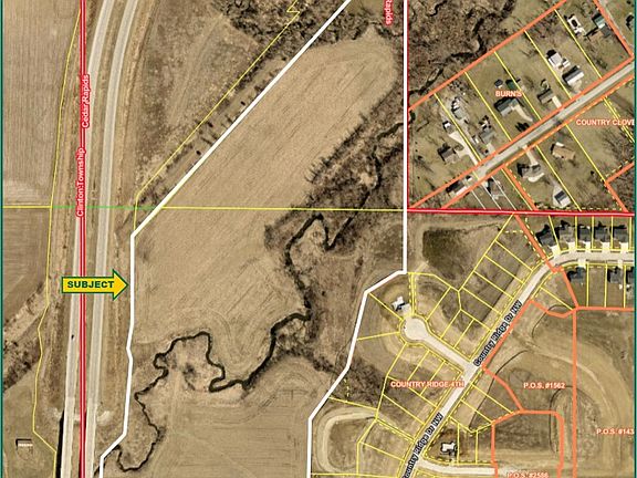 This is an attractive, 41.81-acre building site located on the west edge of Cedar Rapids, along Ellis Rd. It includes a mixture of income-producing cropland, timber and creek. A paved bike trail runs along the west and north boundaries. This is a rare opportunity to purchase a large, buildable lot within the city limits of Cedar Rapids. Primary soils are Atterberry, Waukee and Kenyon. CSR2 on the 23.79 crop acres is 80.80. See soil map for detail. The Buyer would need to connect to the city water system. Cedar Rapids would allow a septic system to be installed on this property. For more information, contact the listing agent.