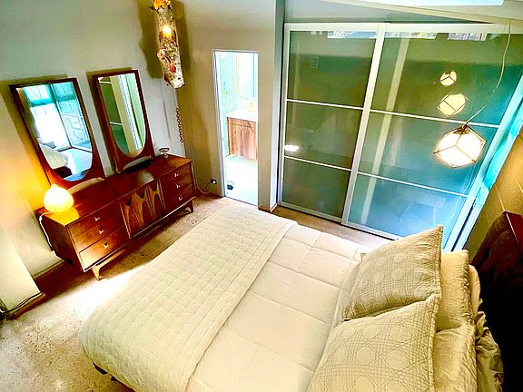 Home is available January through March of 2026. It is not available before 2026, and is not a long term rental. This is Mid Century Modern 2 bed/2bath Gem in Arapaho Acres - Near DU, Hospitals, restaurants/breweries, and public transportation. This completely renovated home offers privacy and tranquility. The bedrooms and baths are on separate ends of the home, and the bright open living space with floor to ceiling glass extends outdoors to a garden patio with fireplace table and sauna. The modern kitchen, dining room, and living room flow effortlessly together, complete with a LED fireplace. The home is fully furnished with high end period specific furniture and artwork. You won't want to leave!