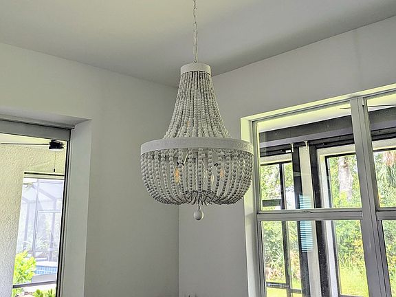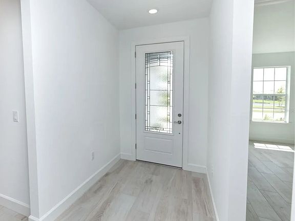 There is a 90-degree door that opens up to the lanai, effortlessly blending indoor and outdoor living spaces. This unique feature allows you to enjoy the balmy Florida weather and provides a perfect setting for entertaining guests. Many upgrades to the lanai as well. The laundry room has an upgrade with cabinets over the washer and dryer, and lower cabinets on the opposite wall with a sink.