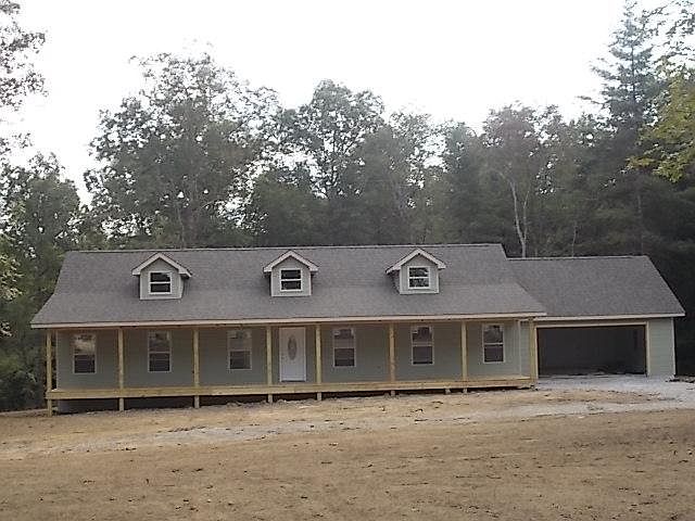 Beautiful large new home on 10.6 Acres. Pasture ground, some woods, walking trail, flowing creek, with brand new barn! Large Covered porch on front & back. 3bedrooms & 2 baths. Custom cabinets in this nice kitchen, baths & laundry room.. 2 Car garage. You want a bargain? You got it!!! $187,500. Try to find one like it at this price! Call me today but don't wait long. Watch for new interior pictures as finished.