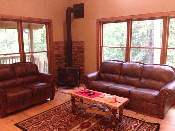 Rustic log cabin nestled in the community of Twin Cove. Just a minute away from the marina. Best of both worlds with charm and convenience. Both bedrooms have adjoining private baths. Upper loft area overlooking living room. Granite Kitchen counter-tops. Less than 10 minutes from I75. Equipped community with marina, boat launch, and restaurant.