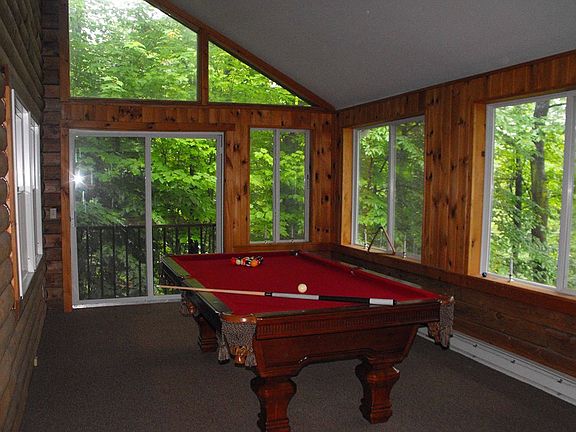 GRAND LOG HOME!! Open, airy & bright best describes this custom, genuine log home. 4 Bedrooms & 2 baths - all large rooms. Year round Florida/Sun Room off the living room has seasonal lake view. Full walk out basement is ready to finish with rough plumbing for additional bathroom and 12 foot ceilings . All in the most amenity filled community on the ''Big Lake''.