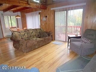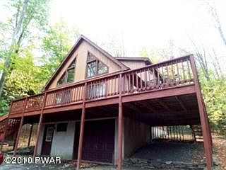 Plenty of ROOM in this cozy Chalet in Wallenpaupack Lake Estates! 2 bedrooms plus large loft which can be converted into a third bedroom, 2 full baths, Huge deck that wraps from the front to the side of home, met by sliders from both the dining room and living room. Also features a cozy loft, tongue and groove wood ceilings and exposed beams for that added country charm! (Furnishings are negotiable)