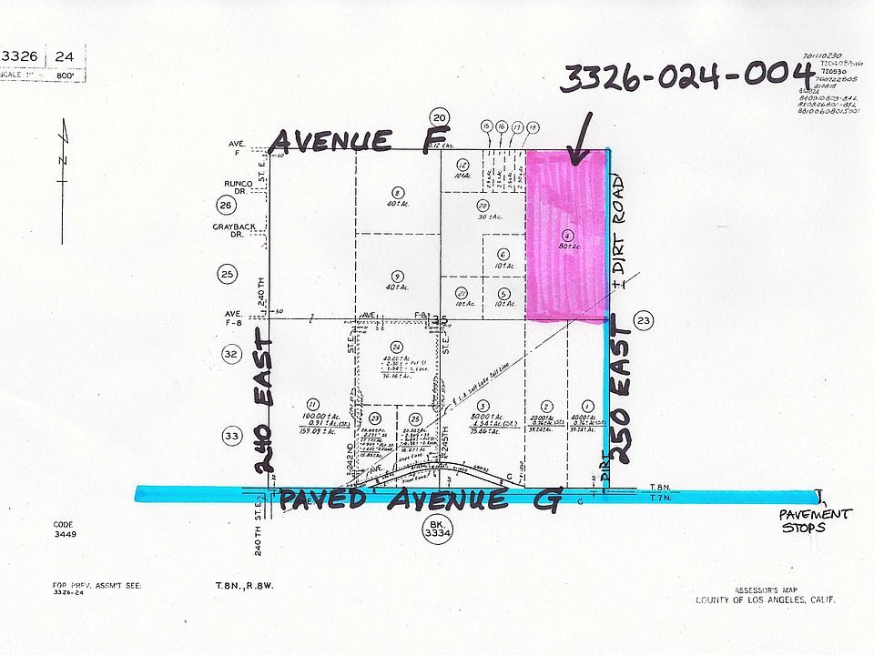 JUST 1/2+ MILE FROM PAVED AVENUE G. NORTH LOS ANGELES COUNTY NEAR HI VISTA AREA. 80 GROSS ACRES. OWN YOUR OWN. GOOD VIEWS. BUYERS TO VERIFY ALL ASPECTS OF SAID LAND INCLUDING CURRENT AND FUTURE USE SIZE, NET ACREAGE, EASEMENTS, DIMENSIONS, ZONING, UTILITY AVAILABILITY, UTILITY COSTS, SLOPE, TOPOGRAPHY, ETC, TO THEIR OWN SATISFACTION.