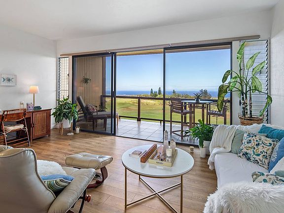 VIEWS! You will LOVE the breathtaking Ocean & Maui views the minute you approach this updated condo perched directly above the golf fairway! Expansive vistas beyond are framed by high ceilings & through a wall of sliding glass doors expanding to a spacious lanai for that enviable outdoor living. A West-facing orientation protects you on gusty days & you'll stay comfy at this desirable elevation w cool breezes enhanced by louvered windows & sunshades, too! The lucky new owner will be tickled to relax, entertain, watch golfers, or gaze at magical sunsets turned tropical starry skies!