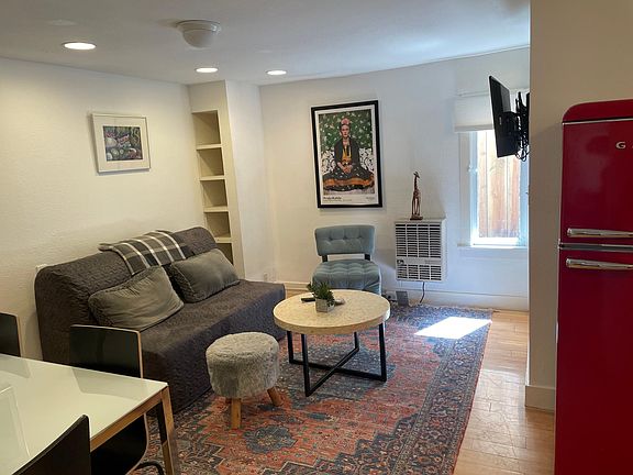 Adorable, furnished 1 bed, 1 bath Garden apartment walking distance to town! Currently furnished with all bedding, appliances you will need. High-end Wolf range oven and modern kitchen and gourmet chef wolf range, washing machine/dryer, big backyard with fruit trees