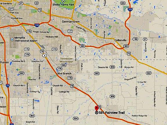50 acres of rolling wooded land with open areas and nice home sites located in eastern Desoto Co. This land was started as a subdivision with roughed in road system. You can continue construction of subdivision or hold as an investment or home site. This land is located in an area that has easy access to major roadways but still has a country feel. There is plenty of places for your home, barn and workshop. There is plenty of deer and turkey here if you are a sportsman or watcher. If you need more land there is a 12 acre and a 60 acre adjoining tract that is available. Land is located at the end of Fairview Trail. From Exit 10 (W. Byhalia – Ingrams Mill) at Hwy 78 go south on Red Banks Rd. for 1 1/2 miles then left at the tan brick church onto Fairview Rd. for 1 1/2 miles then right on Fairview Trail to the land at the end of Fairview Trail.