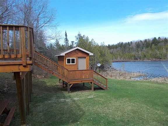 Exceptional cabin in a great north woods setting. Situated on Davies Lake, this is one of two private cabins on the lake surrounded by Federal Forest Lands. The lake is a wildlife lake frequented by loons, eagles, osprey, shore birds, waterfowl and a variety of land animals. It provides good kayaking and canoeing. There are many lakes and thousands of acres of woods to roam nearby as well. You will not find a more relaxing site with a superb cabin that has all of the bells and whistles of an off the grid luxury unit. Generator, drilled well, modern kitchen and bath facilities, satellite TV, walk out basement, propane wall furnace and efficient wood stove for year round use. Deck overlooking the lake and leads to a sauna. This a very cool place you will love. Cannot be reproduced for nearly twice the money. Buy hassle free serenity.