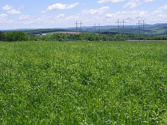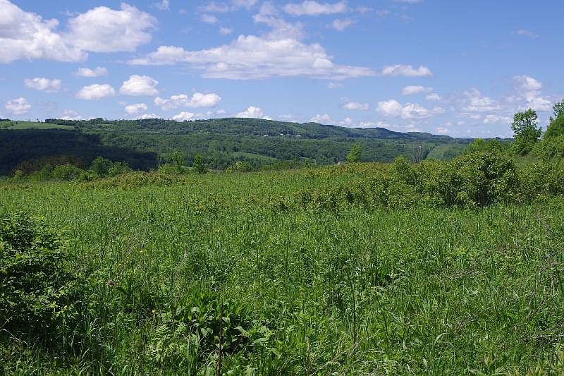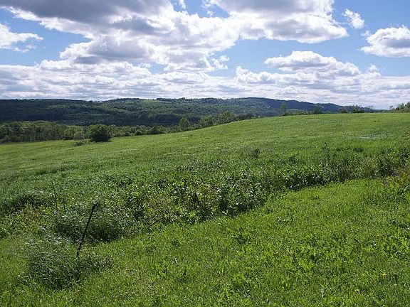Certified Organic Land w/expansive vistas right and left. Of the 70 acres, about 30 acres are open, ~12 of which are currently used (grass/vetch hay), 15 wooded (est). Quiet area, paved road w/power and you will love the view. >275' road frontage.