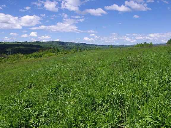 Certified Organic Land w/expansive vistas right and left. Of the 70 acres, about 30 acres are open, ~12 of which are currently used (grass/vetch hay), 15 wooded (est). Quiet area, paved road w/power and you will love the view. >275' road frontage.
