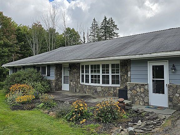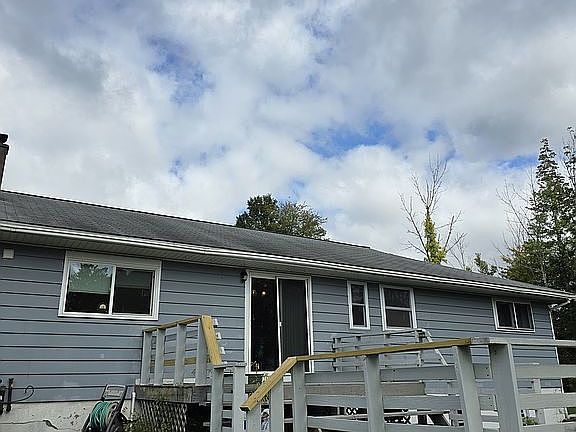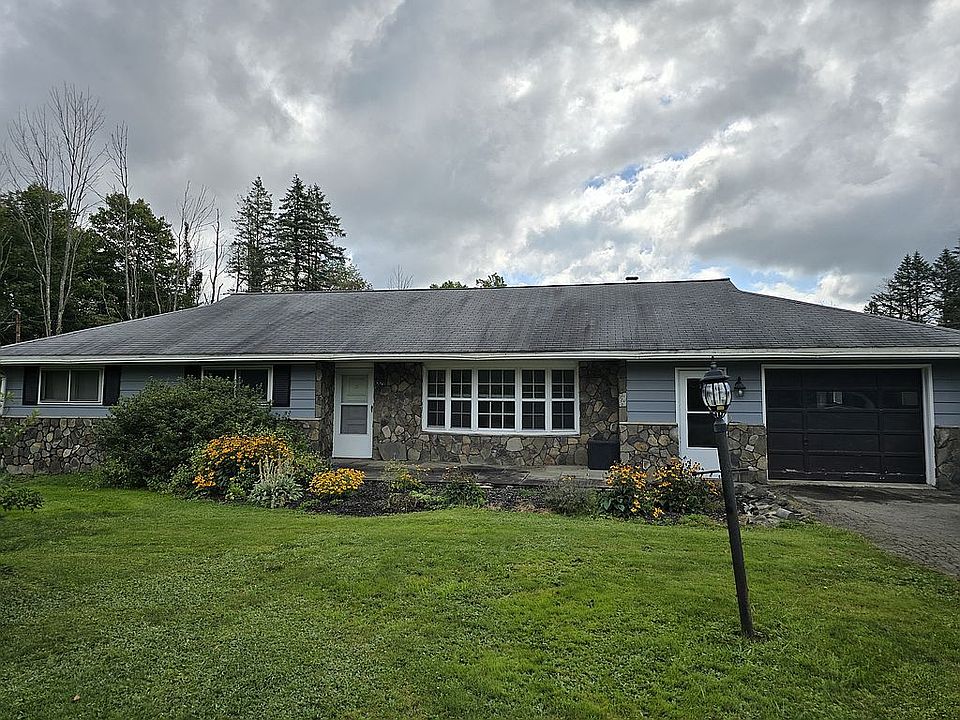 Large ranch house. Upstairs we have 3 bedrooms, full bathroom, dining room, kitchen, living room, and laundry room. Bedrooms each have a large walk in closet. There is a one car garage attached with automatic door opener. Large attic for storage. Downstairs we have the boiler room, one smaller bedroom, another full bathroom, and a large finished room with a bar. Great space for entertaining. Upstairs is all hardwood, downstairs is tile. Large parking area in front of the house. You could easily fit 4 cars. In the backyard we have a hot tub that will be included in the sale. The backyard also features a large wooden porch, two stone patio areas, and a large yard.