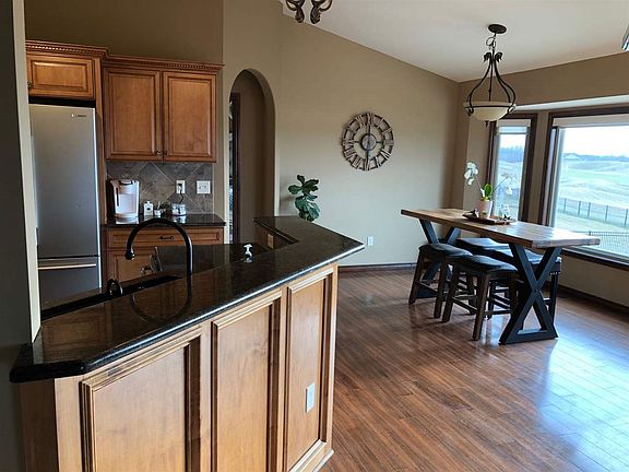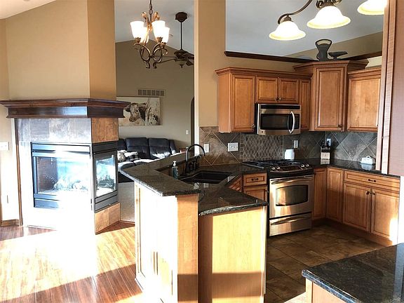 Perfect fairway lot with sweeping views from every room. Oversized basement windows make it hard to believe you are not right on the course! Views of large lake, fairways, cart paths and amazing sunsets. Enjoy an evening of entertaining on the covered full length deck or walk out pit area with oversized patio perfect for a fire pit. Beautiful woodwork, granite counters, walk in pantry, huge dining area, hard wood floors, 3 way fireplace on main floor. Fireplace and wet bar complete the walk out basement. Wrought iron fenced back yard. Sand Creek Station offers an award winning 18 hole links style golf course and community swimming pool.