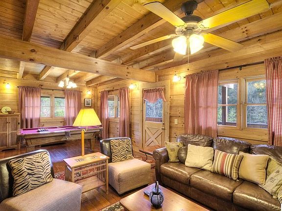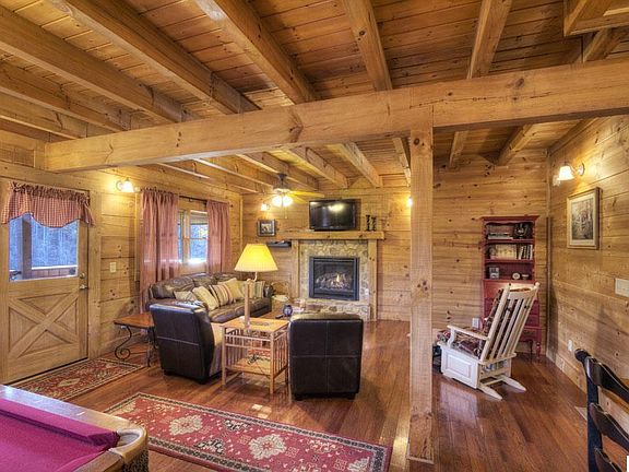 $45k in projected annual gross rental income! This Smoky Mountain retreat situated on a third of an acre has been utilized as a private vacation home and comes fully furnished! Open concept main level offers fully equipped kitchen, living area with stone fireplace and pool table. Upstairs find the spacious master suite with full bath, whirlpool tub and private balcony. The lower level consists of the large second bedroom with space for two beds and its private full bath, offering plenty of room for guests. Enjoy the beautiful outdoors with three levels of decks! Exterior recently stained & painted. Less than 3 miles to Tanger Outlets, under 5 miles to Dollywood, and travel like a local, as you're perfectly located to take the back roads wherever you need to go! Rental projection provided by Venture Resorts, Inc.