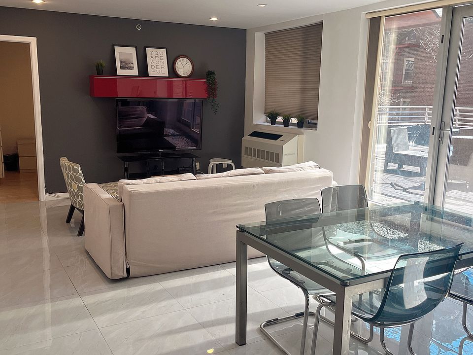 Spacious two bed & two Bath With 1000 sf Balcony for rent on Third floor in flushing .Beautiful and Clean ,Very safe and quiet. New bad and bath , Washer and Dry Machine. Walk to 7 train about 10min . Rent IS $3000.00 . just move in. Tenant must pay own utilities (gas and electricity).