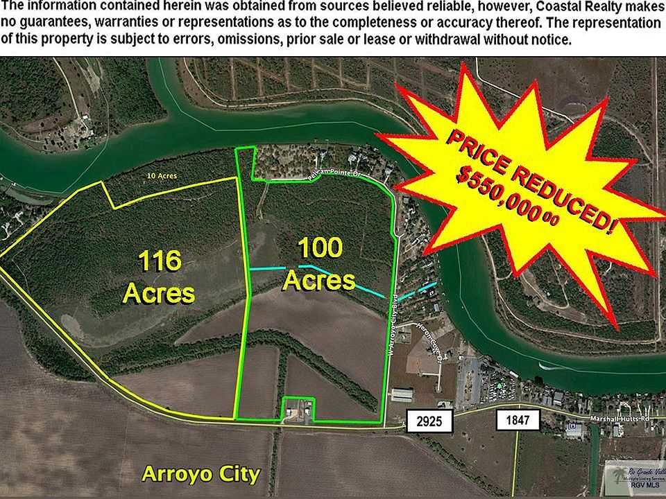REDUCED! - Was $645,000! - 280(+/-) ft of ARROYO COLORADO RIVER FRONTAGE, FM 2925 Frontage, & 3/4 mile of West Arroyo City Blvd Frontage. - - - Also Available - - - 116 Acres (MLS 29722797) - Reduced! - Was $690,200 - Now $550,000.