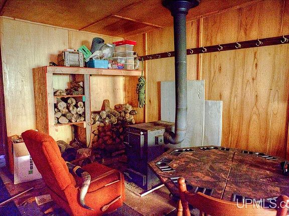 40 Acres tucked up in the northern woods near the Porcupine Mountains. Wooded land with a camp that is wired for electric with a generator, has a holding tank for septic, a large 14x12 & 14x8 open living and dining area with a 10x10 kitchen with metal cabinets, an LP stove, an island with a butcher block top, a 12x14 bunk room, a back storage/bathroom, and another exit. There is a creek that runs through the property. Nice gravel road. Lots of wildlife and hunting opportunities.