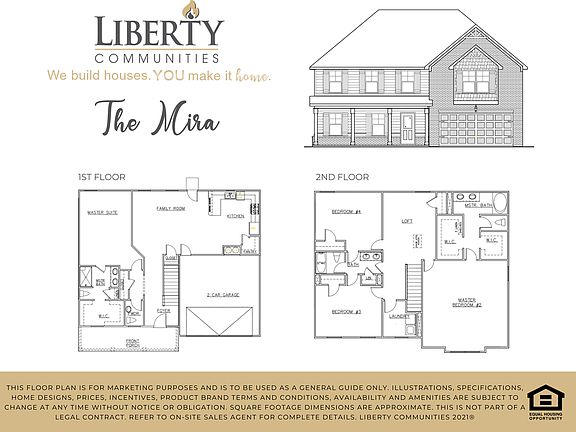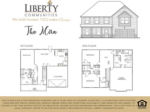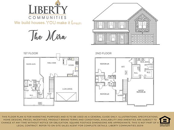 The Mira is a new, open concept plan with up to 4 bedrooms, 3.5 baths and a loft area.. This spacious home gives you not one, but two owner's suites - one on each level! Other plan highlights include: large, inviting family room, dining area and walk-in pantry. *Home information, including pricing, included features and availability are subject to change prior to sale without notice or obligation. Square footage dimensions are approximate. Sample elevation shown.