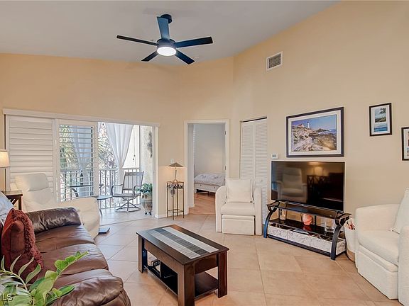 Welcome to your slice of paradise in beautiful Fort Myers, Florida! This bright and airy second-floor end-unit condo overlooking the water is located in the highly desirable, gated Bellamar at Beachwalk community and offers the perfect blend of comfort, style, and resort-style living. This residence features 3 bedrooms and 2 baths in a split floor plan, providing excellent privacy. Volume ceilings enhance the open-concept layout, while wood flooring in the bedrooms adds warmth, complemented by uniform tile throughout the main living areas for easy maintenance and a cohesive look. The open kitchen features stainless steel appliances, granite countertops, a breakfast bar, and seamless flow into the living and dining spaces—ideal for entertaining or everyday living. Plantation shutters adorn all windows and the lanai slider, adding timeless elegance throughout. The spacious primary suite boasts a custom walk-in shower and a custom wall-unit closet, while both bathrooms are finished with marble countertops. This condo features a screened-in lanai overlooking the lake, offering one of the best views in the community with a serene, unobstructed water view that provides exceptional privacy and a peaceful setting—perfect for enjoying your morning coffee or taking in beautiful sunset views at the end of the day. Bellamar at Beachwalk is known for its lush tropical landscaping and low monthly fees, and residents enjoy a lakeside resort-style pool and spa, fitness center, and the peace of mind of a recently completed new roof. Investor- and seasonal-buyer friendly, the community allows up to 12 rentals per year with a 30-day minimum, making this an excellent opportunity for income potential or flexible seasonal use. Just minutes from Fort Myers Beach, Sanibel Island, shopping, dining, and entertainment, this condo is ideal as a full-time residence, winter retreat, or investment property. A must-see opportunity to enjoy the Southwest Florida lifestyle at its finest.