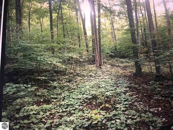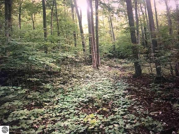 This wooded property is tucked away for privacy but less than 5 minutes to the Village of Lake Ann and 11 miles to Traverse City. The owners used the property for hunting there is a small storage shed. The building is on a poured concrete slab adjacent to this building is a wooden platform that they would pull their camper up to and use as a deck. Property has a two track that runs through it but hasn't been maintained in 9 years. County signs say seasonal road but county does plow through the whole road in the winter.