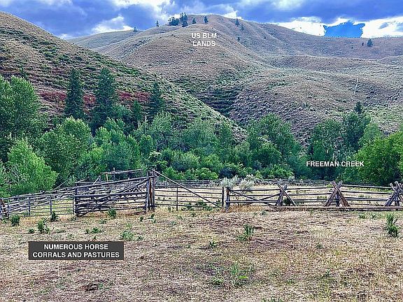 40 ACRE WATERFRONT PROPERTY. 158 FREEMAN CREEK ROAD, CARMEN, IDAHO 84462 (RP23N23E314801). 40 Acre parcel with Freeman and Smout Creeks Flowing Through Property. 9 Acre Irrigated Hay Field with Gravity Fed Wheel Line. Includes Three (3) Water Rights: 75-14353, 1915 (0.018 CFS) - 75-14357, 1940 (0.162 CFS)- 75-14355, 1960 (0.162 CFS). Two (2) Year-Round Artesian Springs. Secluded and Private Yet Only 8 Miles to Downtown Salmon Idaho. Dramatic Views of Continental Divide, Freeman, and Copperhead Peaks. Classic Horse Property with World Class Hunting and Fishing Out the Backdoor. Parcel Borders US BLM Land on One Side (USFS trailhead only ½ mile away). Spring Fed Meadows and Shade Trees. Multiple Awesome Dream Home Sites. Vintage Farmstead Buildings and Corrals with Great Restoration Potential. Gorgeous/Private RV Site Located on Freeman Creek (live here while you build!). CCR’s to Maintain High Property Values. Power to Property; In an Area with Good Wells. $749 (Owner Will Carry Contract). YOUNG WATER AND LAND COMPANY - PH 208.290.3820 - Email: hydrobio@aol.com