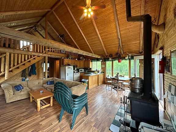 Here's your chance to own 20 acres of hunting land that backs up to thousands of CFR land in Menominee County! A quick drive from either Escanaba or Iron Mountain, this property could be the starting point for making many "camp memories" for years to come! The log cabin needs a little TLC but has loads of potential! Open concept main floor with 2 bedrooms along with a loft area provides a comfortable and cozy setting. Solar powered for electricity along with wood/propane heat. Property is being sold AS IS and is subject to Probate Approval. Seasonal access crosses over a few properties - legal access is unknown. Year built is approximate. Buyer is Responsible for verifying lot size and dimensions.