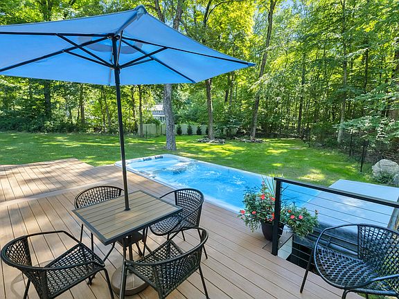 Turn key Colonial with numerous recent renovations set on a level, wooded 2 acre lot on a quiet & serene road in Lower Weston. The renovations boast an open and bright concept kitchen featuring an oversized large island with quartz counter tops, new smart appliances including a spacious built-in fridge, an induction range & multiple dining areas. The expansive primary suite is a perfect start or end to your day by providing soaring ceilings, ample closet space & spoil yourself features such as a spa like bath with double vanity & floating sinks, heated floors, a shower and Bluetooth ceiling speaker. A rain-shower head & body sprays & large, frameless, glass add to the minimalist contemporary design. There are newly finished hardwood white oak floors throughout, 2 working fireplaces & flex space on the main level which is perfect for an office, playroom or yoga room. There is also a main level bedroom suite with a renovated full bath which could be used as a guest bedroom or in-law suite. Relax in a heated year round, swim spa & hot tub combo on the private Timbertech deck. The lower level includes two finished rooms & an abundance of storage space. This modernized & renovated home is packed with features and has so much to provide for the owner!