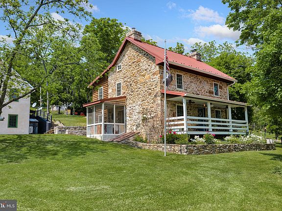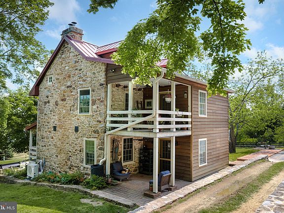 Step back in time to The Hackney-Stimmel House built in 1832, completely renovated and restored from 2012-2014. 17.67 acres with a small pond and natural spring, unrestricted. Stone house with standing seam metal roof. New double pane windows. 3 fireplaces , all relined. 1 with Quadra -Fire insert and 1 with woodstove. New well and septic installed 2013. Mini split heating and A/C added in 2022. New quartz countertops 2023. Tankless water heater installed 2022. Original Heart Pine floors throughout the house. 2 car detached garage with 10 ft ceilings and a 460 sq ft apartment above. Apartment has 1 bedroom and 1 bathroom. Bathroom has soapstone floors and radiant heat. Stained oak floors throughout. In unit washer and dryer. Tankless water heater. Anderson double hung windows, woodstove. Separate cable and wifi. 4 fenced pasture areas. 3 with livestock shelters. 5 bay pole barn-equipment shed clad in cedar with a metal roof. Chicken coop clad in over 200 year old barn wood with metal roof and fenced enclosure. Large barn- workshop clad in Hardie siding and standing seam metal roof. Roof has 10kW grid tied to solar array. Stone retaining walls built from cut stone from 200 year old barn. Fieldstone walls rebuilt on property. Owners have done a wonderful job restoring this property and put their hearts in it and you can feel it the minute you step on the farm.