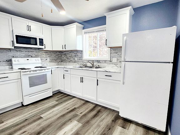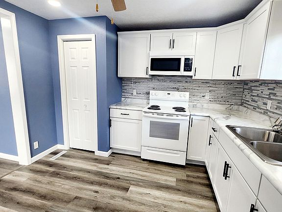 Check out this completely remodeled home inside and out! Features all new flooring and paint inside, new vinyl siding, new roof, all new wiring, new plumbing, and new windows. Updated bathroom and kitchen. Kitchen appliance stay. Fenced in backyard. Basement features a small family room/play room, and both bedrooms. Call for your personal tour today!
