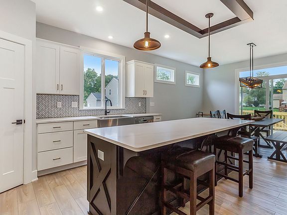 Buildable Home Plan - Photos Are Representational The Balsam, named after the most fragrant fir tree, evokes freshness and a feeling of open spaces.. The Balsam is our latest ranch plan, featuring 1773 of flexible living space. Join us as we walk through this unique and modern home.Enter the Balsam home through your front porch or through the two-car garage, immediately finding the mudroom to your left. The conveniently located mudroom includes a coat closet and an optional bench. This room is great for organizing shoes and coats in once place for easy retrieval.To the right of the entryway, you will find the first of two bedrooms, complete with a full bathroom and closet space. Your family members or guests will enjoy having their own room to relax in.Continuing down the hallway, you'll walk into the free-flowing main living area which combines the family room, dining room, and kitchen into one bright, airy space. The kitchen is a culinary dream and includes a spacious island, double sink, wide counters on either side of the oven, and a walk-in pantry.The kitchen transitions into the dining room, which opens to the rear of the home through a sliding door and offers the option do add more windows for even more natural light. The large, centrally located family room creates a warm, welcoming space for gatherings, and you can always customize it with several options, such as a stone fireplace.From the family room, a short hall leads to the main level laundry room and
