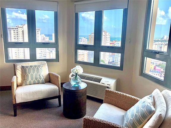 Live in the most exclusive Condominium in Condado, Gallery Plaza. This remodeled and unique 1,337 sq.ft. apartment located on a high floor at the North Tower was set up to please with the comfort and elegance you are looking for, facias, recessed lights and so much more. Accentuated with exquisite finishes this apartment has a lot to offer. The master bedroom offers views to the Ocean and the rest of the apartment enjoys the mountain and ocean range views and the Isla Verde coastline. Gallery Plaza has FULL POWER GENERATOR, WATER CISTERN, 24/7 security, Concierge, pool, Jacuzzi, 2 covered parking spaces, walking distance to trendy restaurants, fitness center, grocery store, pharmacies, boutiques, etc.. HOA $425.00
