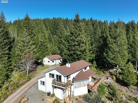 Gorgeous mountain, ocean and big vista views, from this secluded 10+ acre, 3 bdrm, 2 bath private retreat! End of the road privacy joins thousands of acres of public land. Amenities include, beautiful rough-hewn wooden floors, ceramic tile flooring, soaring beamed vaulted ceilings, an open concept floor plan, wood stove, and high speed internet! The separate third car garage can also be used as guest quarters, it includes a full bath, wood stove, and a mini kitchen area. Ask to see the 3D tour!