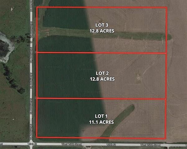 Beautiful 37+/- Acres in rural Johnson County on NE corner of 159th & Sunflower Rd. Perfect location to build your dream home or weekend getaway house! Property is platted into 3 separate lots. Owner will sell property as a whole or separate lots. Potential driveway access for Lot 1 off of 159th & two separate driveways for Lots 2 & 3 off Sunflower Rd. Free natural gas available on Lots 2 & 3 (well needs perforated on lot 2) & potential for well on Lot 1. Property is located a couple miles west of Celebration Park.
