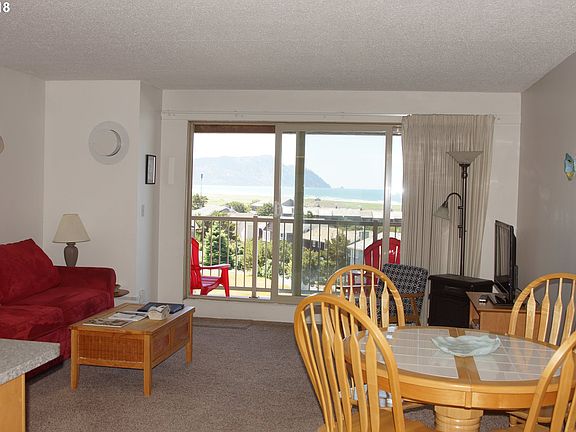 Hurry! Outstanding views of ocean, Tillamook Head and the Lighthouse from this 3rd floor unit perfectly positioned for Wow! views. Updated unit includes favorite pull-out kitchen cabinets with matching built-ins for extra storage. Newer appliances. Comes nicely furnished. Excellent Rental! Amenities: elevator, indoor pool & hot tub, exercise room, laundry facilities. Side-walk to the beach trail. Located across from Gearhart Golf.