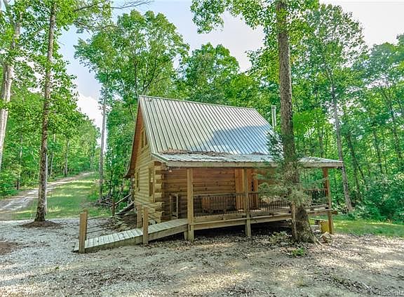 Secluded custom log cabin getaway on 27.7 acres of land with natural and private surroundings, located just 45 minutes from Indian Trail/Matthews via the Monroe Bypass Connector. Escape to this 1BR/1BA true log home with a full kitchen and loft area. Additional features include a wood stove, mini-split HVAC, well, septic, covered shelter, rocking chair front porch, back porch with ramp, handicapped accessible bathroom with roll-in shower, and open concept floorplan. This log home is the perfect vacation and weekend retreat close to home!