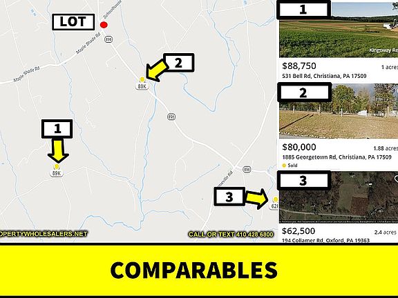 OWNER FINANCING AVAILABLE!!! Cash Price: $24,000 or Finance: 29,000. Direct Message Anytime! 410-428-6800 Call or Text Drew Hill: 410-428-6800 Email: sales@propertywholesalers.net This property is listed well below market value! In the heart of Amish Country, this pristine .32 Acres is in the farmland of Lancaster County/ Colerain Township Parcel # 1002058000000. The property is currently zoned agricultural. Country living but with all the amenities. Enjoy the quaint shops with local fares and the calm rolling hills! This lot is perfect for getting away from it all! Direct Message Anytime: 410-428-6800 Call or Text Drew Hill: 410-428-6800 Email: sales@propertywholesalers.net *Terms and Conditions: There may be a low documentation fee of for this lot. This land is being sold in as is condition. Seller makes no representations, warranties of any kind whatsoever, expressed or implied. All prospects buyers are urged to do their own due diligence to their own satisfaction prior to purchase of this property. All information contained in this listing page has come from reliable sources and is accurate to the best of our knowledge.