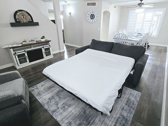Fully Furnished 4-Bedroom Home Ideal Mid-Term Rental Looking for a comfortable and spacious mid-term rental? This beautifully furnished 2-story home is perfect for families, professionals, or anyone needing a temporary stay in a prime location! **Property Highlights - 4 Bedrooms | 2.5 Bathrooms - Sleeps up to 10 guests comfortably - Bedding arrangement: 2 King beds, 1 Queen bed, 2 Twin beds, and a pull-out couch - Fully furnished plus all amenities needed for a hassle-free stay - Family-friendly neighborhood with a neighborhood park next door **Prime Location - Easy access to US60, making travel around the Valley a breeze - Minutes from downtown Gilbert with its vibrant dining, shopping, and entertainment options - Nearby essentials: Grocery stores, pharmacies, and a variety of restaurants and fast food spots within 5 minutes This home offers the perfect balance of comfort, convenience, and accessibility. Whether you're in town for work, family, or relocation, this is the ideal home-away-from-home. **This listing usually rents quickly so make sure to inquire today for availability so you don't miss out on this great property** This home is available for a short or mid term rental agreement. Long term would be considered.