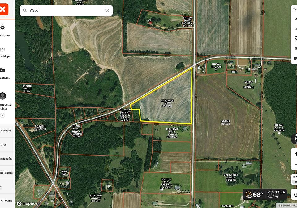 18.67 acres located near Webb, AL Open farmland. Paved road frontage on Gilley Mill Rd and Bill Yance Rd. Power and water available. Perfect place for a new home. Owner will divide into 3 acres or more @ $10,000 per ac. Restrictions: No mobile homes over 5 years old, only one home per lot, no commercial animal business, and no swine.