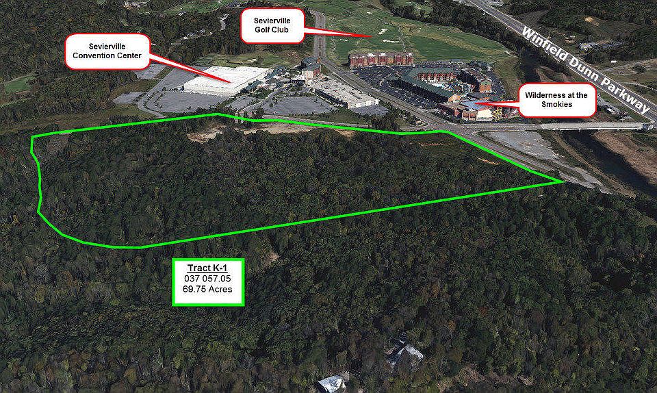 Goldman Partners Realty, LLC and NAI Koella | RM Moore are pleased to exclusively offer for sale this large corner commercial development tract in Sevierville, Tennessee. The tract is located close to the Sevierville Convention Center and several major tourist venues. Because of the size, topography and location, the likely uses are for a lifestyle-type commercial development, retail development, tourist attraction or tourist-oriented housing development. Tract K-1 is one of nine contiguous and non-contiguous tracts in the same tourist-oriented mixed-use development that are being offered for sale. • Located on a signalized corner • Municipal utilities available • C-5 Tourist Commercial Zoning District
