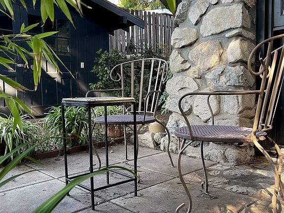 For rent is a newly renovated 1928 Craftsman stone bungalow studio, fully furnished and architect-designed with custom cabinetry, new electrical and plumbing, laminate flooring, and beautiful built-in lighting. The unit features a full kitchenette (fridge, cooktop, microwave, toaster oven, cookware), remodeled bathroom, AC/heater, ceiling fan, skylight, double-pane windows, and a 40" pivoting smart TV with high-speed internet and its own router. Soundproofing has been added for extra privacy.