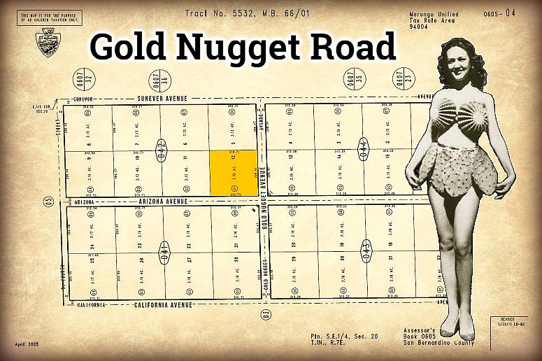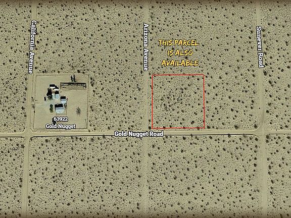 2.13 Acres on the corner of Gold Nugget Road and Arizona Avenue. Pristine area is awaiting development. Beautiful views of Joshua Tree National Park skyline. The neighboring 2.13 acres is also available for purchase. Investment or future homesite. To purchase this property on terms from DesertLand, we require a Down Payment of $2400 and a Flat Rate Escrow Fee of $492. So your total start-up cost for the property on Gold Nugget Road is $2892. You can then choose a loan that best fits your budget: 5-year loan ($197 a month), 10-year loan ($120 a month), or a 15-year loan ($95 a month). We conduct a traditional escrow with title insurance. We do not require a credit check. Don't have the down payment? Look into our Down Payment Program. On that program, it is only $291.00 to start owning this land on Gold Nugget Road today.