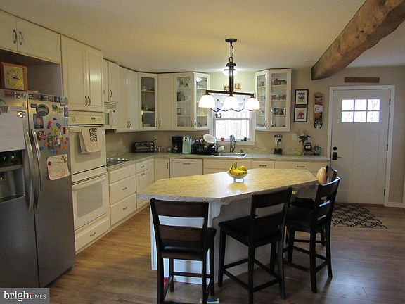 Cozy and secluded home on 2 acres in Twin Valley schools. Main level features laminate wood flooring with eat-in kitchen. Kitchen has double wall ovens, ss refrigerator, dish washer, and island. Living room w/ picture window, closet washer & dryer, bedroom, and full bath also on main level. Upper level has an additional large bedroom with a full bath and walk-in closet. Enter into the 2nd entry into the lower level foyer with coat closets and an over-sized attached 2 car garage.