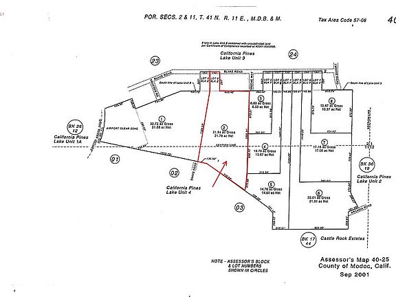 This 22 acre parcel of land is situated in the State of California, County of Modoc an unincorporated area. Legal description as follows: Lot 6, Block E of the California Pines Lake Unit 3