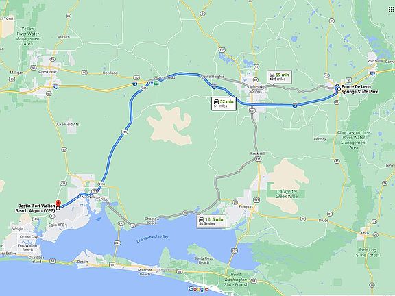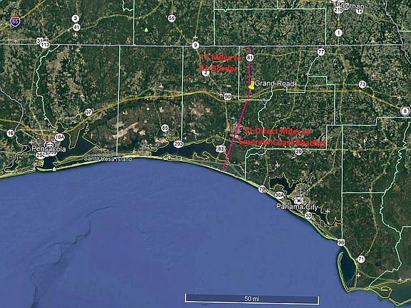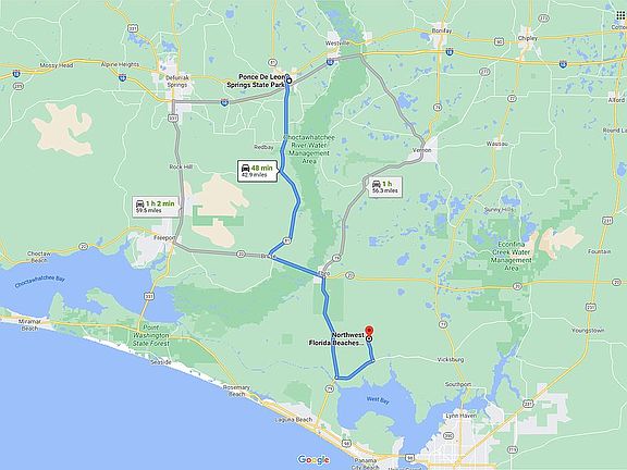 Beautiful tree-covered 40-acres parcel awaits the construction of your dream home in Ponce de Leon, Florida, a recreation mecca dotted with crystal clear artesian springs, including Ponce de Leon State Park, Morrison Springs County Park and the famous Vortex aquatic park and deep dive springs. The area abounds in rivers, streams and lakes. Ponce de Leon is a family friendly community free of the pollution, traffic, violent crime and the incessant stress-filled hassles of high density population centers. Elementary and high (middle) schools are located less than 3/4 of a mile from the property making this an ideal location for a family with school aged children. The beautiful Emerald Coast of the Gulf of Mexico is only 31 miles distant as the crow flies making it an ideal location from which to launch beach adventures and some of the greatest fishing in North America from protected intercoastal or blue water fisheries. As a professional who has worked in NYC, LA, Washington, DC and Dallas, I can tell you this area is a great place to live full or part time. For the traveling executive or simply to facilitate your wanderlust, there are two readily accessible regional airports linking you with major carriers at 48 minutes drive...Northwest Beaches International Airport (ECP) near Panama City Beach and at 52 minutes drive, Destin-Fort Walton Beach Airport (VSP).