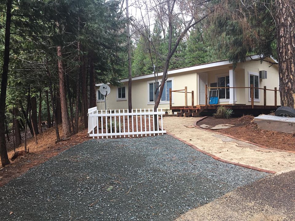 Beautiful quiet wooded setting, with freshly landscaped low maintenance yard. This is a newly & fully remodeled 2 bedrooms, 2 bathrooms private Granny house, with small open den/office space off the Livingroom. Spacious kitchen with lots of storage and counter space. Brand new stainless dishwasher, range and microwave, as well as all new counter tops and refinished cabinets. New wood floors throughout. Laundry room off kitchen. Gas fireplace. Wrap around deck. Not suitable for more than 2 adults or 2 adults & 1 child, due to shared well situation. Water is included. All other utilities not included. Under right conditions, may consider one small house-trained pet. Good credit required. Absolutely no smokers or recreational drug users.
