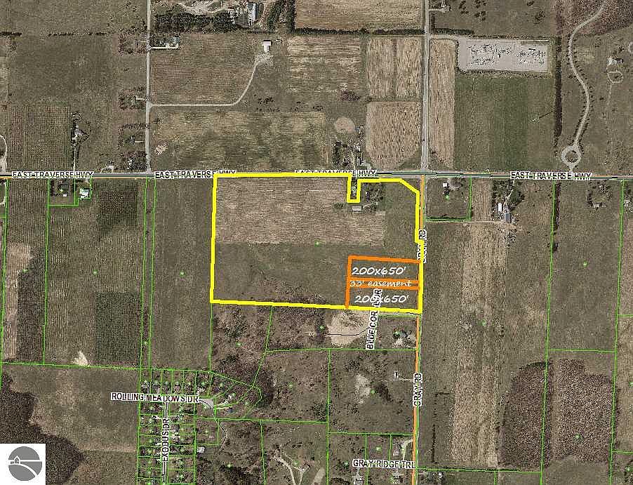 Build your dream home, raise your family or build an investment property on this level 3 Acre parcel only 2.5 miles from West Bay.. Zoned high density residential perfect for multi-family or condos. Serene countryside sunrises and sunsets only 5 minutes to all downtown Traverse City has to offer, dining, entertainment, boating, and the Tart Trail. 3 acre parcel being split from large 52 acre parcel. Sellers will consider selling additional parcels or revising dimensions. Splits pending township approval