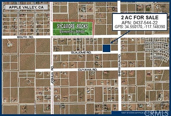 2 Acres on North Apple Valley, CA. (APN: 0437-544-22) GPS: 34.550170, -117.148390 This two acre property is near the Town of Apple Valley within the San Bernardino County. Apple Valley, California, is situated in the southern part of the state, within San Bernardino County. Apple Valley, CA located in the Mojave Desert region, approximately 95 miles northeast of Los Angeles. This property lies within the unincorporated area of the San Bernardino County within the 'Rural Living' zoning. According to the County this land use designation zoning district provides for rural residential uses, incidental agricultural uses and similar and compatible uses. Electricity is approx 340 Ft west, this is a septic and propane area. The water would be provided by your own private well, keeping you out of the high costs of the water companies. Apple Valley is a charming town located in the high desert region of California. With its picturesque landscapes and clear blue skies, it offers a serene escape from the bustling city life. The town is known for its annual Apple Valley Airshow, showcasing impressive aerial displays and attracting aviation enthusiasts from far and wide. The majestic Mojave River flows through the area, providing opportunities for outdoor activities like fishing, hiking, and camping. Apple Valley's community spirit is evident in its local events, such as farmers' markets and cultural festivals, making it a welcoming and vibrant place to visit or call home. This neighborhood is mostly Residential estates, with views overlooking the Town of Apple Valley and Hesperia.